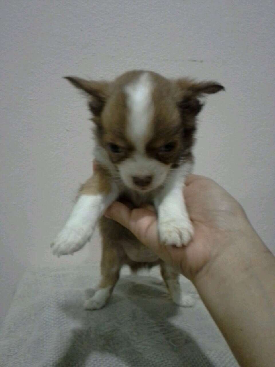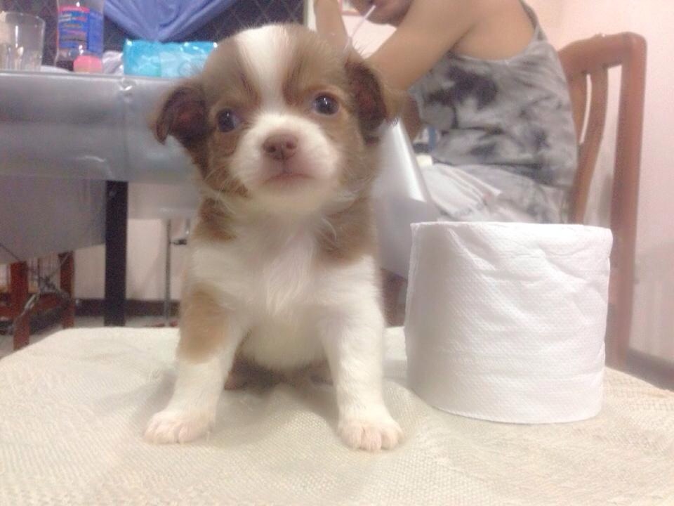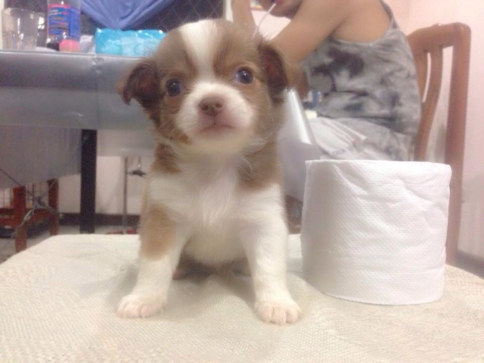 ชิวาวาขนยาว(น้องโฟโต้)สายญี่ปุ่น สีช๊อก-ขาวมาร์กสวย ไซด์เล็กจิ๋ว เพศเมีย