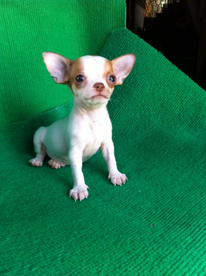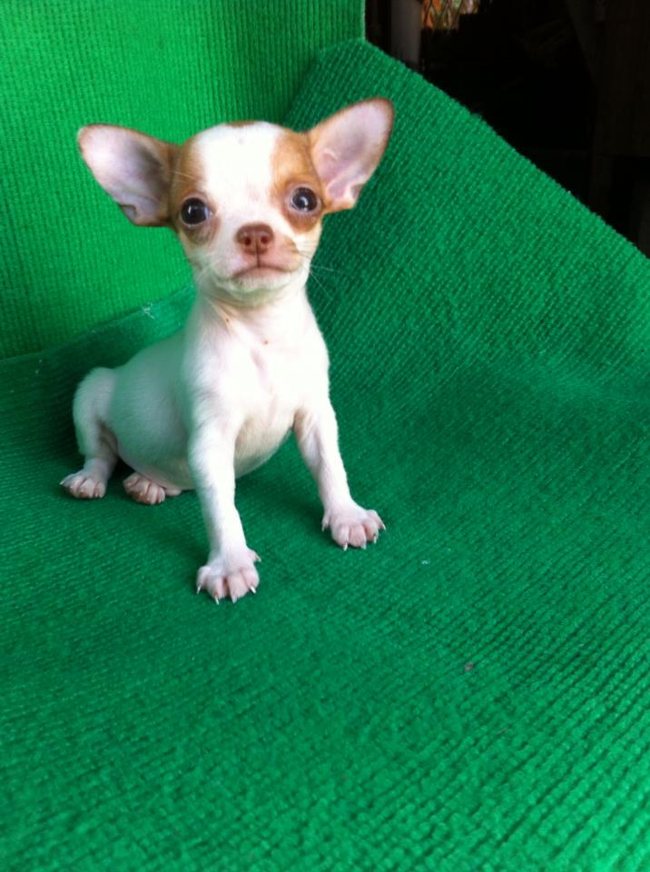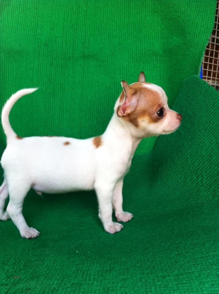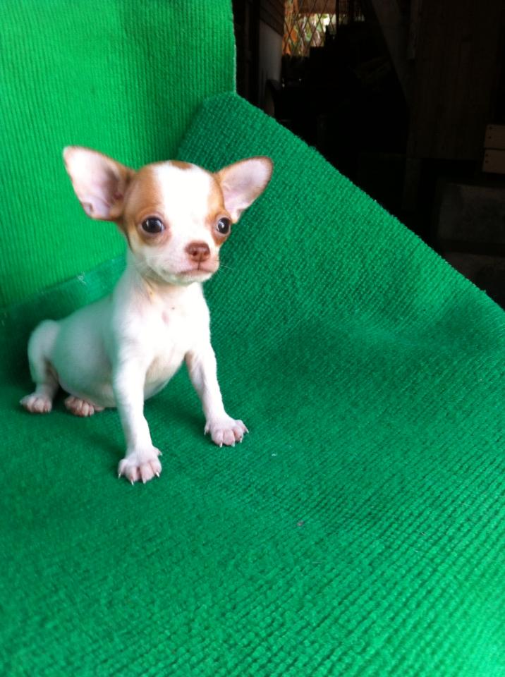 ขายลูกชิวาวาขนสั้นตัวผู้สีขาวน้ำตาล 1 ตัวครับ