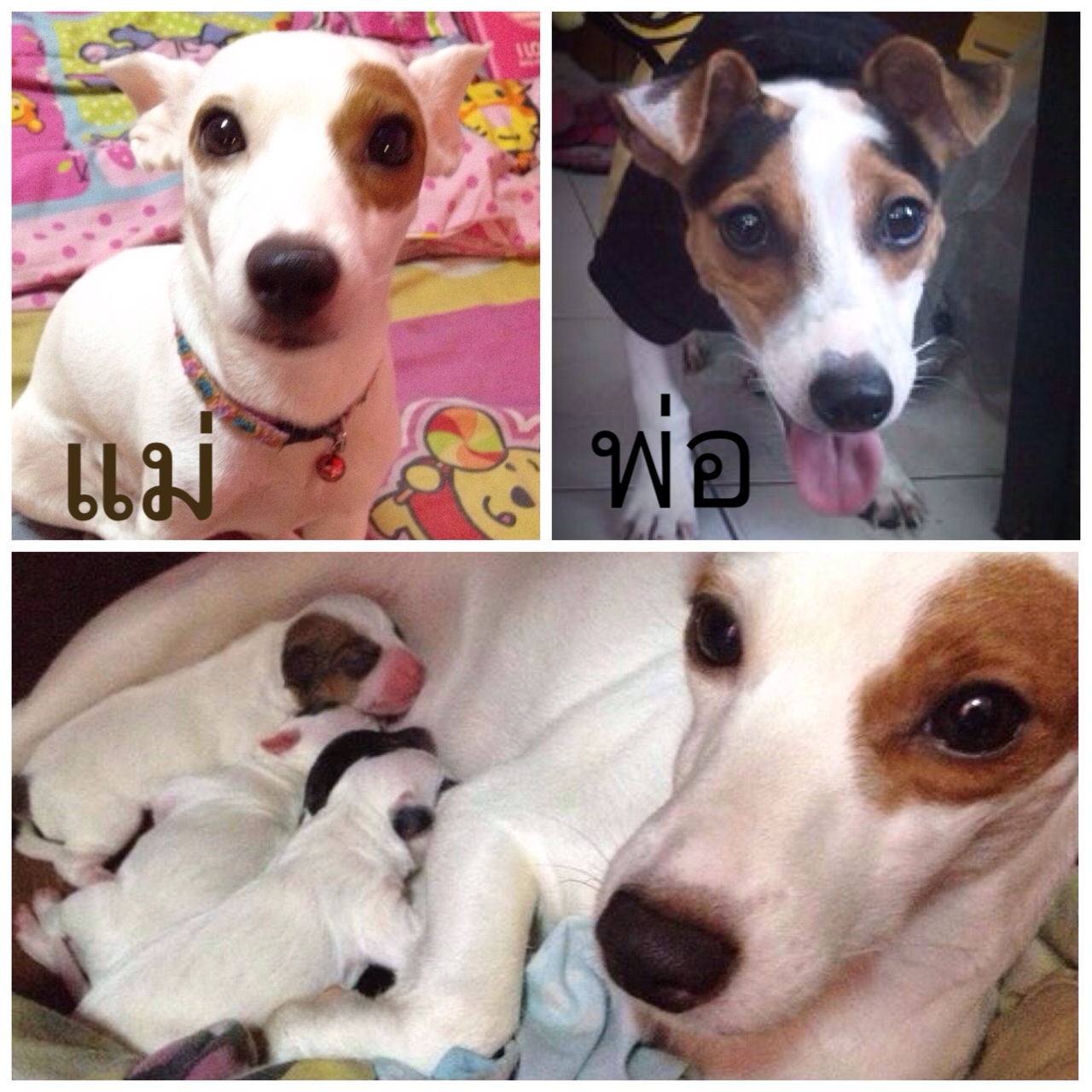 พ่อและแม่พันธุ์ เป็นหมาที่เลี้ยงไว้เองที่บ้าน คอกสุดท้ายแล้ว