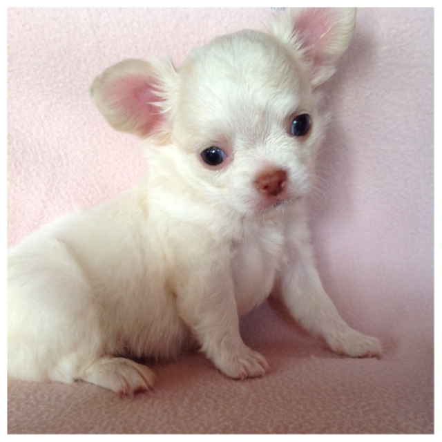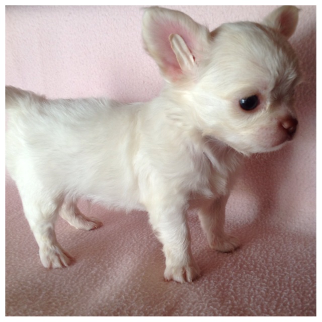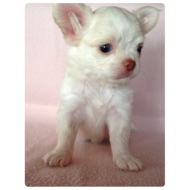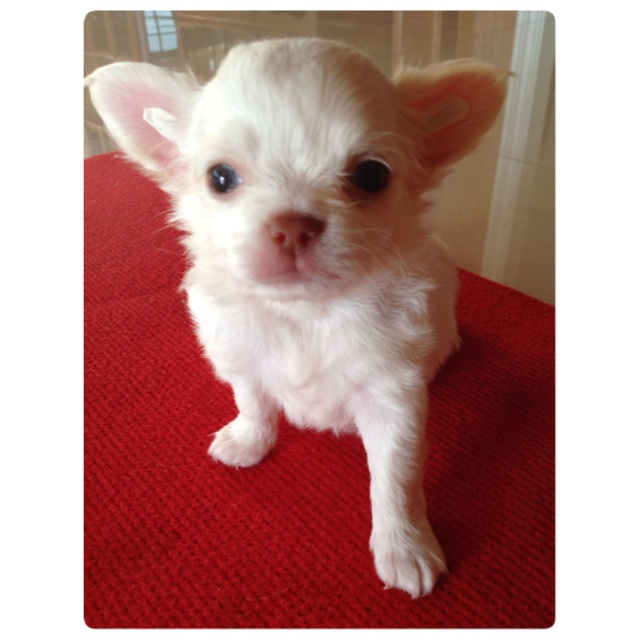 ลูกสุนัขพันธ์ ชิวาวาขนยาว สีขาวครีม อายุ45วัน วัคซีนแล้ว1เข็ม ถ่ายพยาธิแล้ว