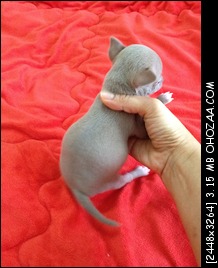 เปิดจองชิวาว่าขนสั้น เพศเมีย ไซด์เล็ก สีบลู(สีหายาก) ขนสวยเป็นเงา น่ารัก มีถุงเท้า 4 ข้าง แข็งแรง กินเก่ง หัวโต สายเลือดดี น้องเกิดวันที่ 30/10/56 สามารถรับน้องได้ตั้งแต่วันที่ 20/12/56 เป็นต้นไป