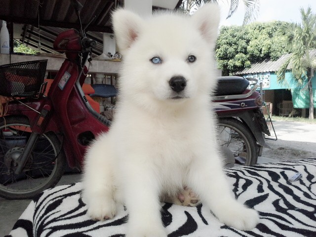ไซบีเรียนฮัสกี้ สีขาวล้วน เพศผู้ เหลือตัวเดียว