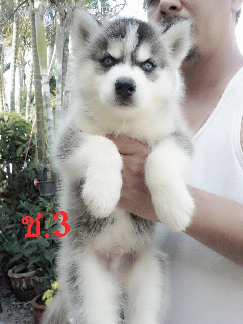 ไซบีเรียนฮัสกี้ ขนยาวสีขาวดำ ตาฟ้าคู่ เพศผู้ 1 วัคซีนรวมห้าโรคแล้วเข็ม วัคซีนรวมสิบโรคอีกเข็ม