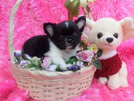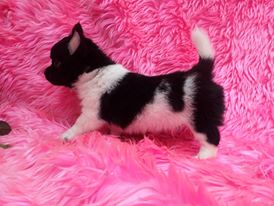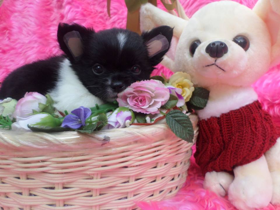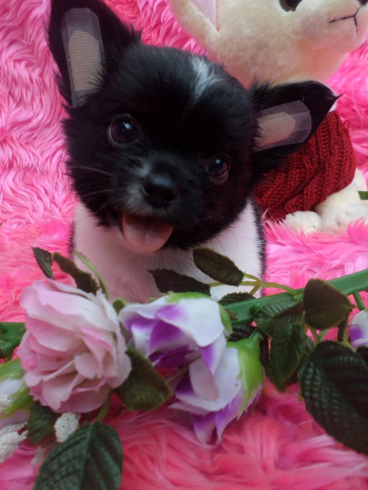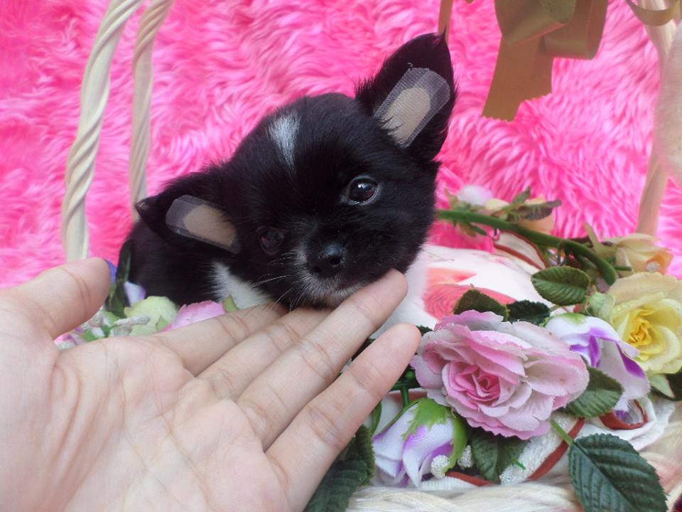 ดช ข้าวตู ชิวาวาขนยาวเพศผู้ ไซส์ปกติ สีแฟนซีขาวดำ