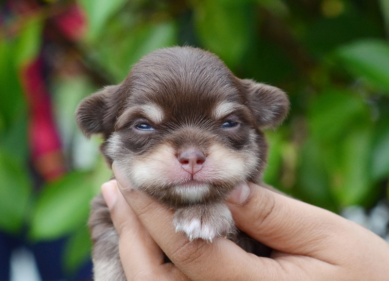 "น้องฮีโร่" เพศผู้ขนยาวสีชอคโกแลตแทน หัวโตหน้าสั้น มาร์กสวย สีสวยมาก ขาสั้นหุ่นสวย