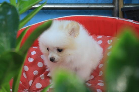 ปอมเพศเมียสีขาวแต้มครีม ไซด์เล็ก มีใบเพ็ดดีกรี(โปร 9900)