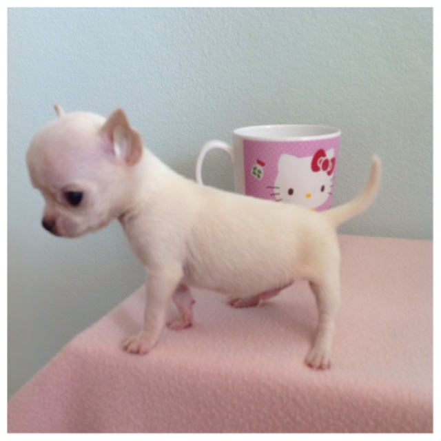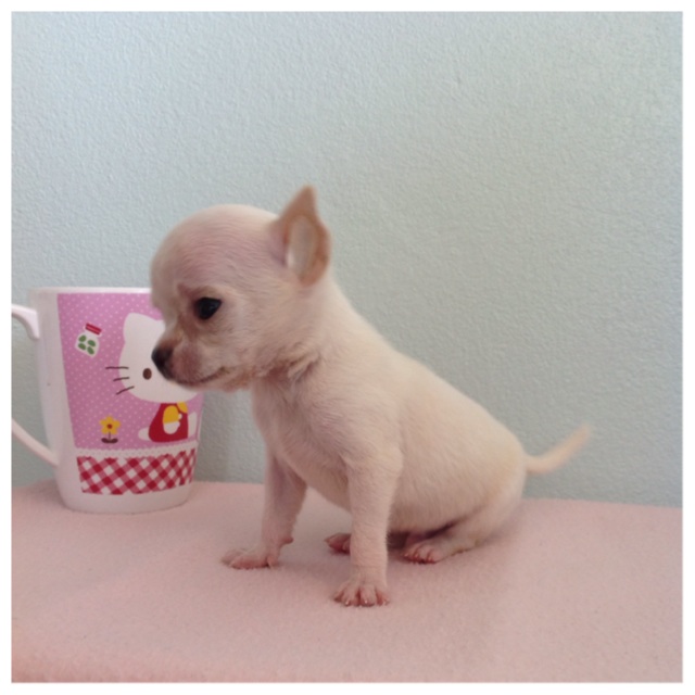 ลูกสุนัขพันธ์ชิวาวา ไซส์ทีคัพ สีขาวครีม เพศผู้ อายุ45วัน วัคซีนแล้ว1เข็ม ถ่ายพยาธิแล้ว