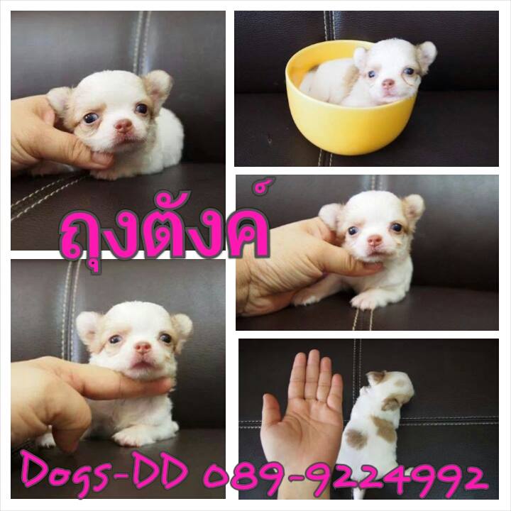น้องถุงทอง เด็กชายชิวาวาขนยาว สีขาวน้ำตาลอมช็อค เด็กดี น่ารัก ตัวติ๊ดเดียวค่ะ......T-CUP......9,900