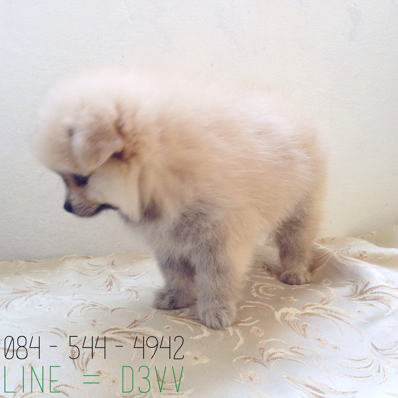 ตอนนี้อายุย่างเข้า 8 สัปดาห์แล้วครับ สีครีมอ่อน ขนแน่น หน้าหมี เพศผู้