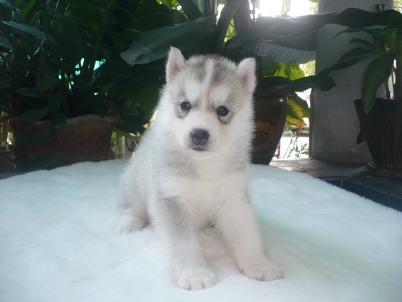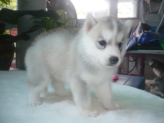 ขายลูกไซบีเรียนฮัสกี้ เพศเมีย สีขาว-เทา ใบเพ็ดเต็ม ราคาไม่แพงครับ