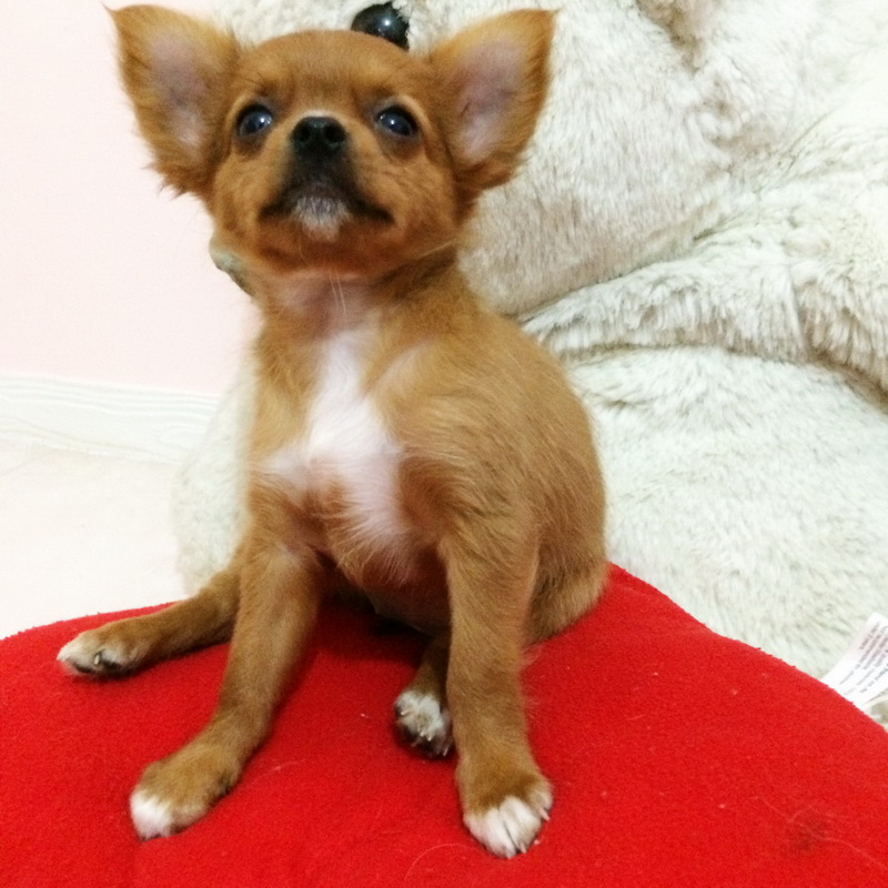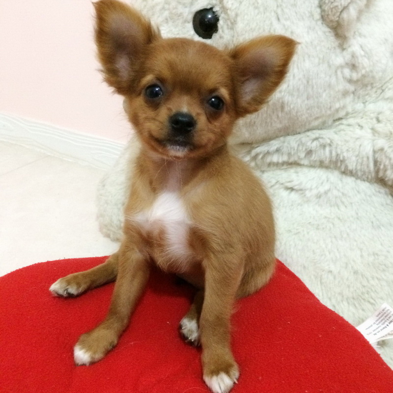 น้องเท็ดดี้ ชิวาวาขนยาวเพศเมีย สีน้ำตาลเข้ม มีถุงเท้าสีขาว 4 ข้าง แพงคอสีขาว ขนยาว อายุ2เดือน