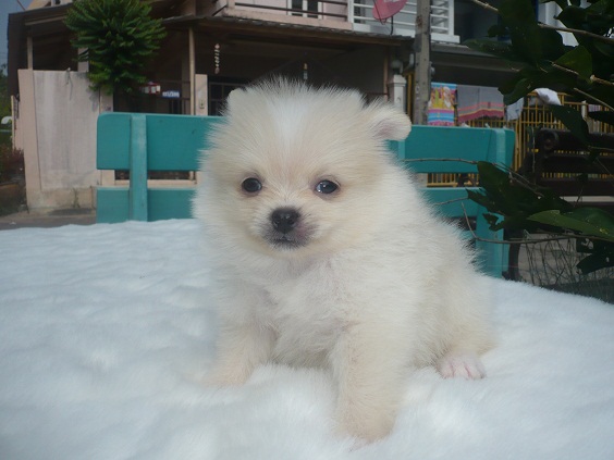 ขายลูกปอมเมอเรเนียน90% เพศผู้ สีขาวครีม ขนฟูแน่น พร้อมประกันสุข