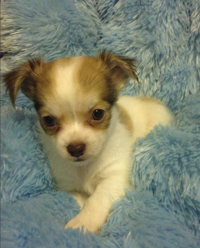 ขายชิวาว่าขนยาว สีแฟนซีขาวน้ำตาล เพศผู้ อายุ 2 เดือน วัคซีนพร้อมถ่ายพยาธิ