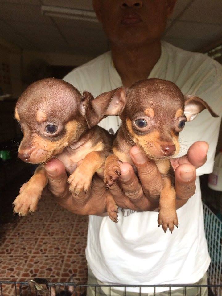 ขายน้องหมา มินิเจอร์ผสมชิวาวา หน้าตาน่ารักๆจ้า ผู้2เมีย1 อายุ45วันแล้ว