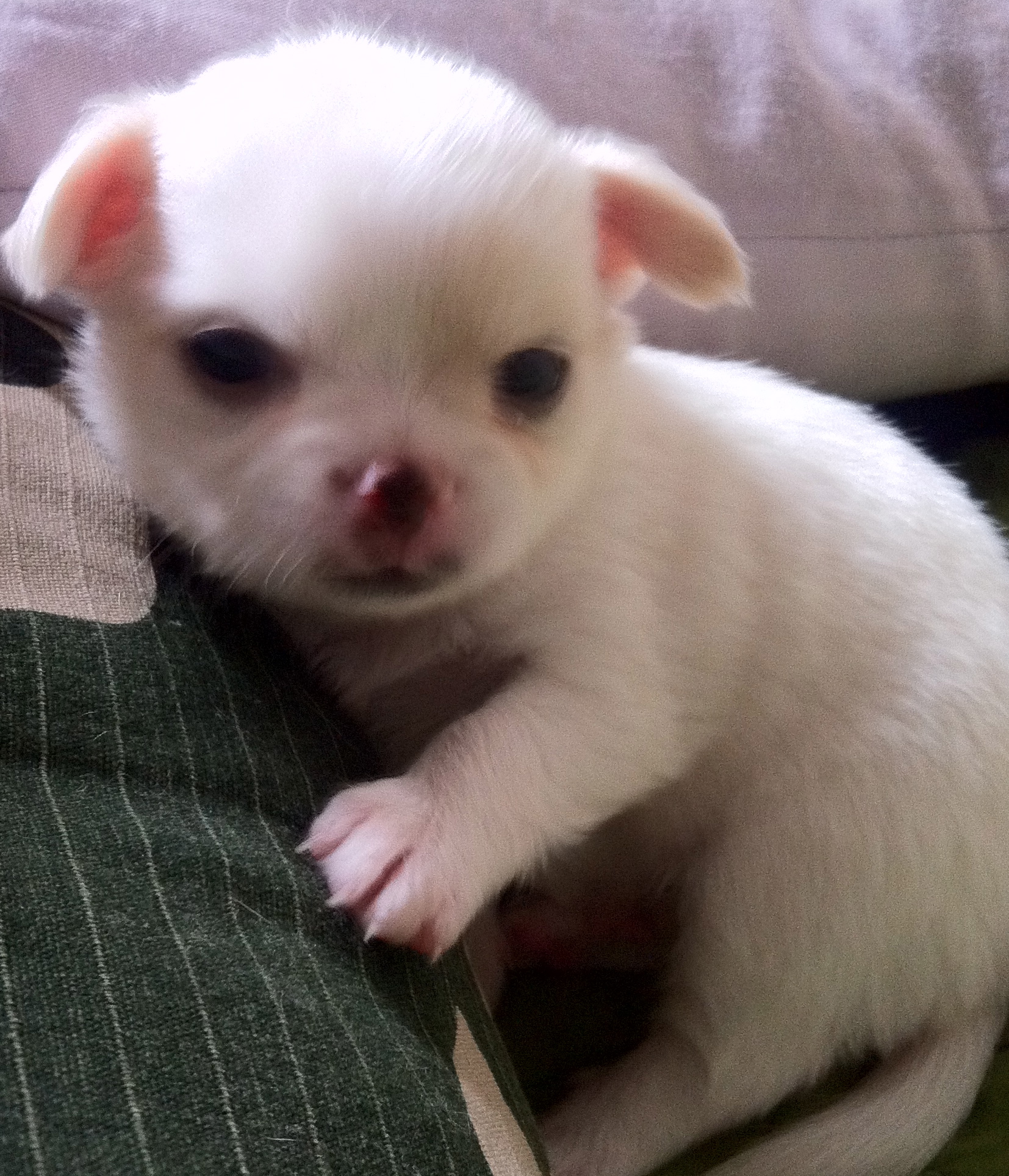 หนุมน้อยชิวาวาขนสั้น ตัวขาว เลี้ยงที่บ้าน พร้อมย้ายบ้านปีใหม่ 6000บาท