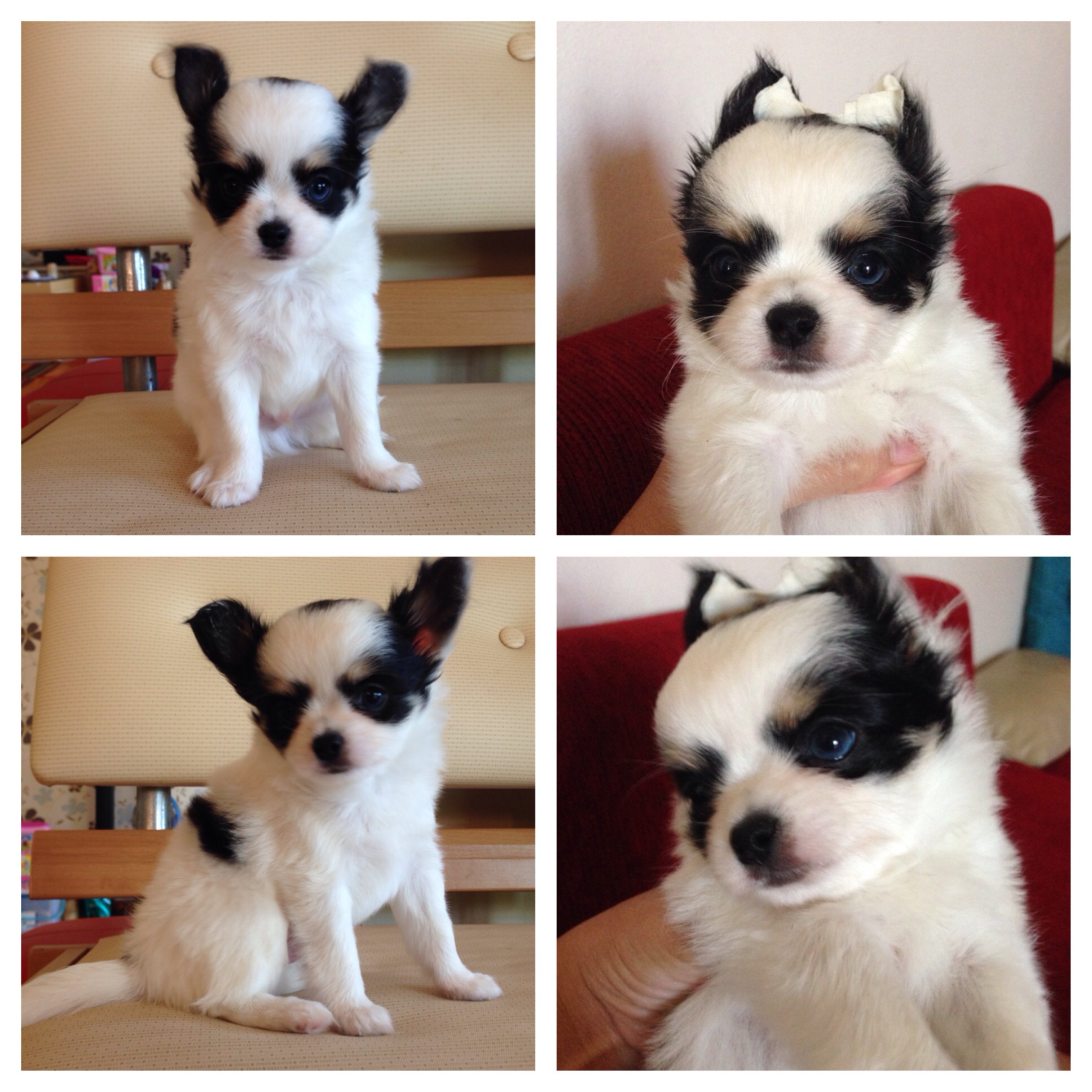 ลูกชิวาวา เพศผู้ สีขาว-ดำ มีคิ้ว ใบเพ็ดเต็มใบ หัวสวยมากคะ