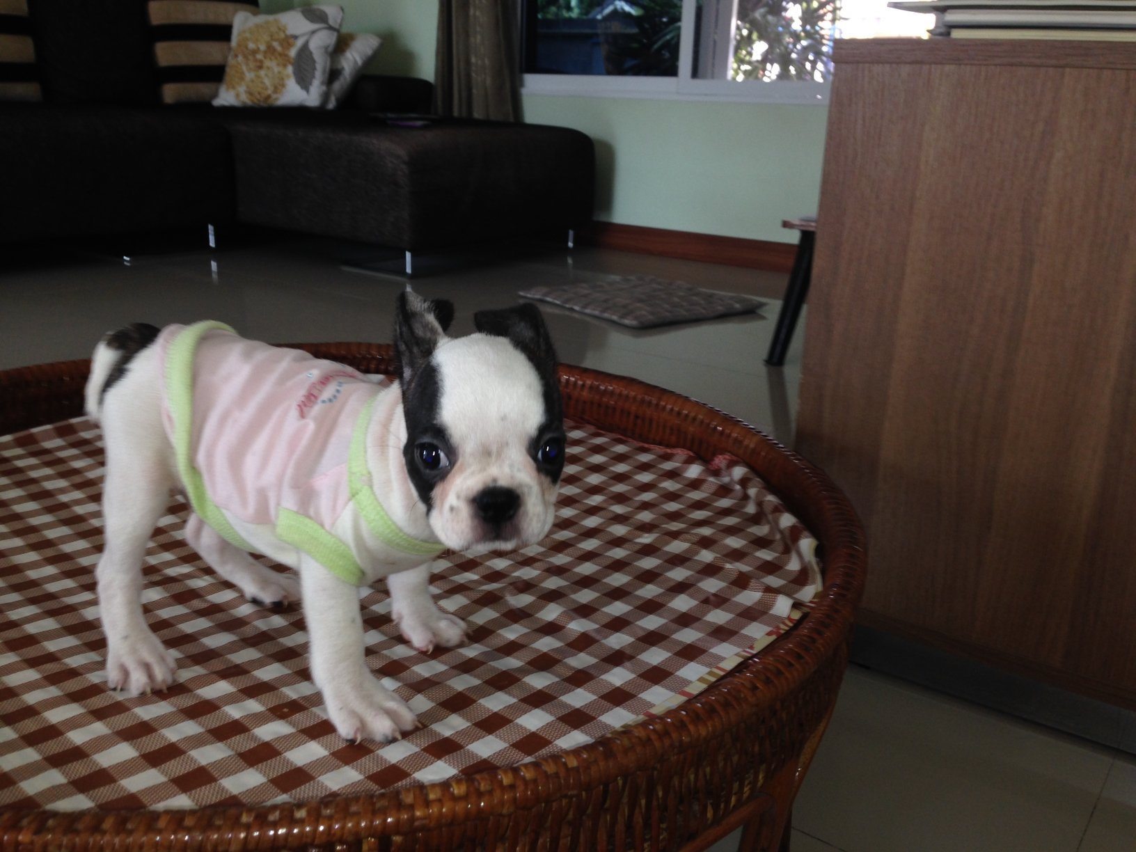 ขายลูกสุนัขพันธ์บอสตัน เทอเรีย สีขาว-ดำ มาร์กกิ้งหน้า พร้อมทำวัคซีนถ่ายพยาธิ เกิด16/10/56 สนใจติดต่อ085-5542237,083-0164535 คุณย้ง น้องหมาพร้อมย้ายบ้านคับ