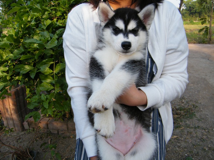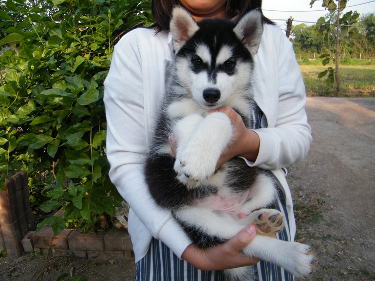 ด.ญ.ไซบีเรียน สีขาว-ดำ อายุ 56 วัน หลุดจอง ใบเพ็ดเต็มใบ ทำวัคซิลแล้ว 2 เข็ม ราคา 9,000 บาท สนใจโทร. 081-1949647 อภิชาติ