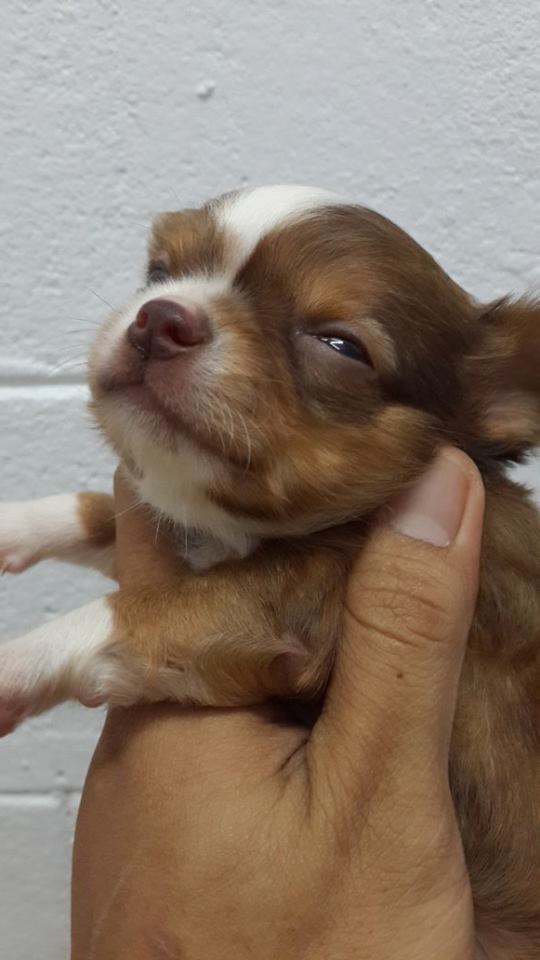 ลูกชิวาวาเพศผู้ ขนยาว หัวโต หน้าสั้น สีช๊อก ราคาเบาๆ สบายกระเป๋