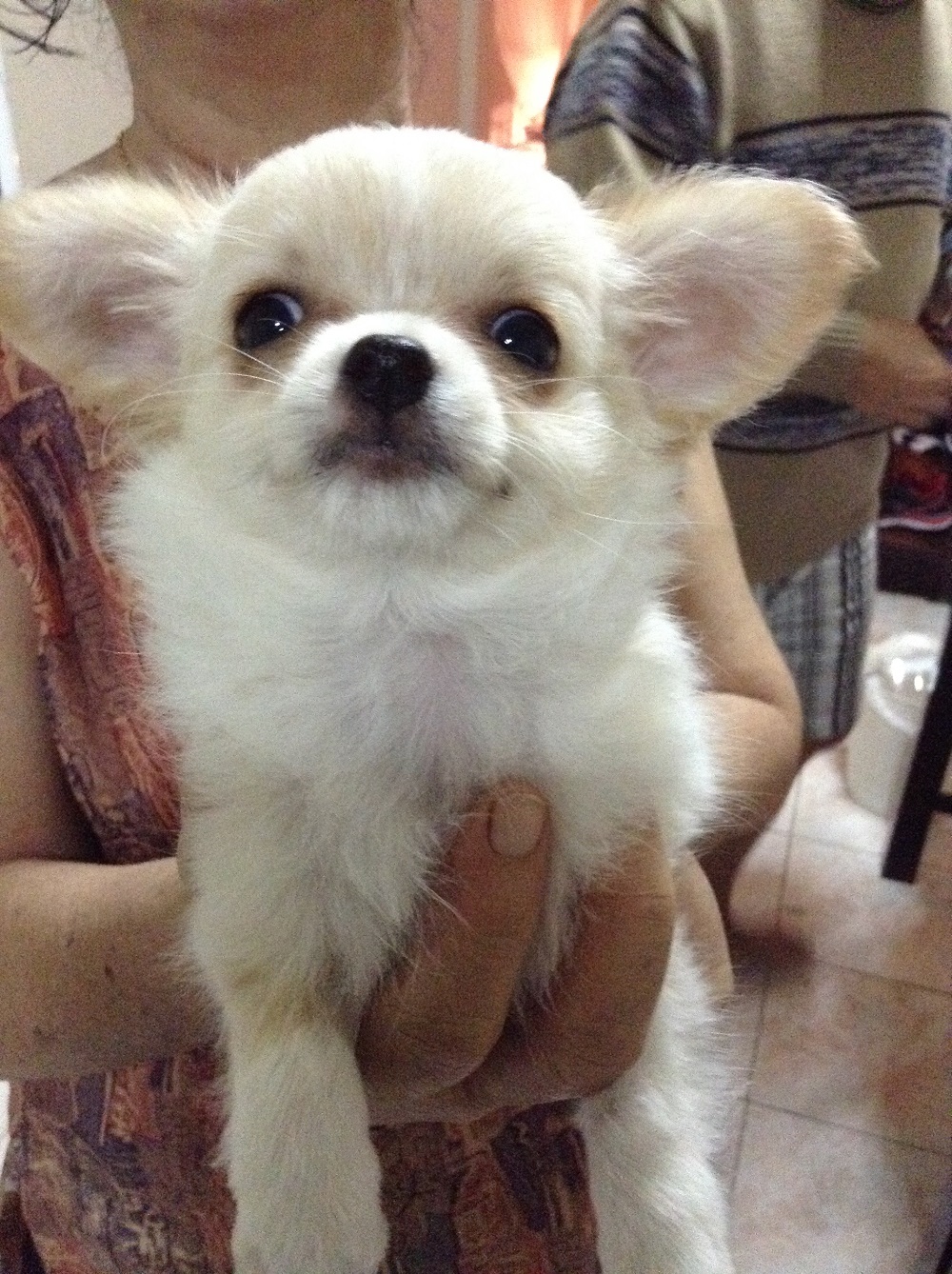 ขายลูกชิวาวาขนยาวเพศเมียสีขาวครีมสายญี่ปุ่นครับ(ปิดการขาย)