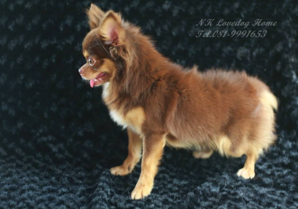 แบ่งขายพ่อพันธ์ชิวาวา ขนยาว สีช็อคแทน หน้าหักสั้นหล่อ หรือรับผสม 2000 บาท