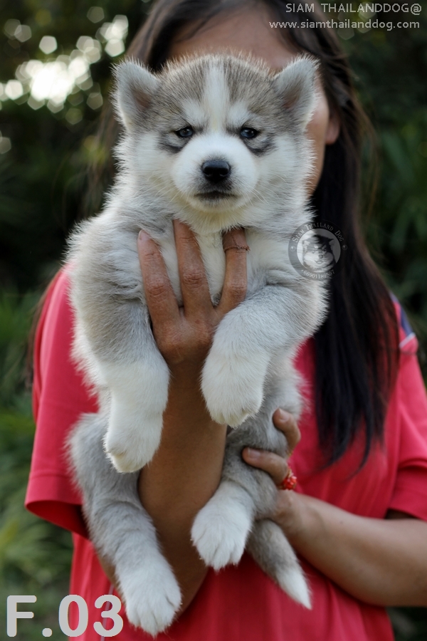 F.03 เพศเมีย สีเทา-ขาว ตาฟ้า ราคา 9500 บาท