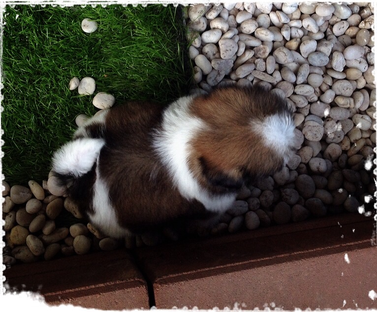 น้อง มีตังค์ เพศผู้ ไซส์ทอยจิ๋วตัวสั้นป้อม สีขาวน้ำตาล มาร์คสวย