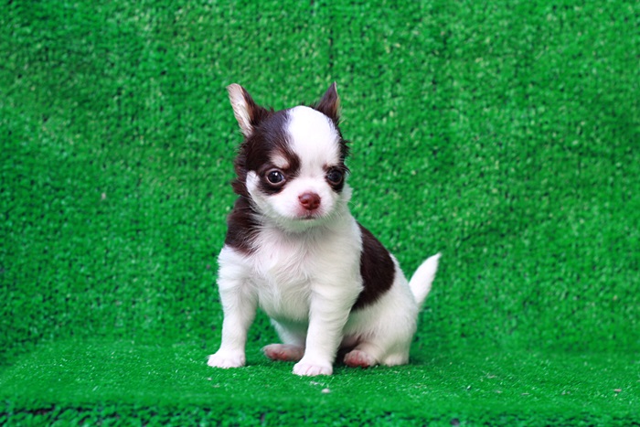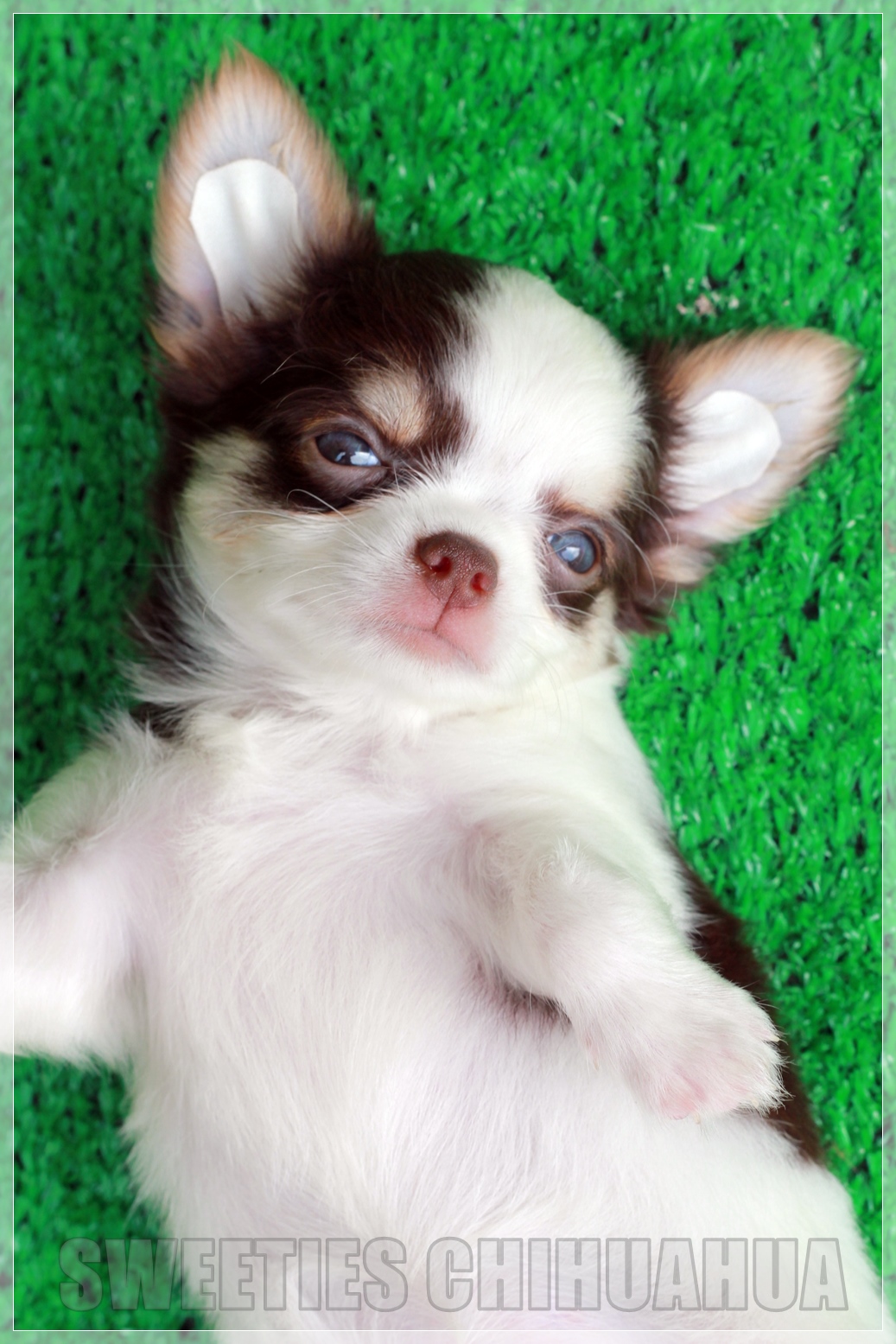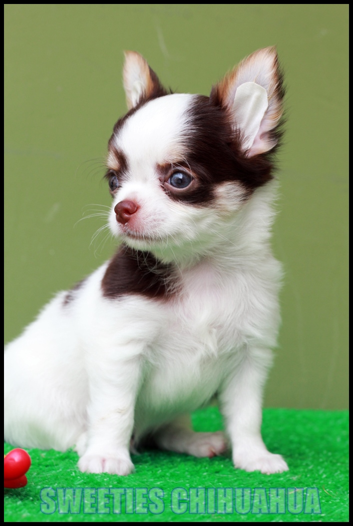 ด.ช.ร๊อคกี้ ชิวาวาขนยาว สีขาวช๊อค เพศผู้ หน้าสวย โครงสร้างดี สายเลือดเยี่ยม มีใบเพดดีกรีเต็มใบ