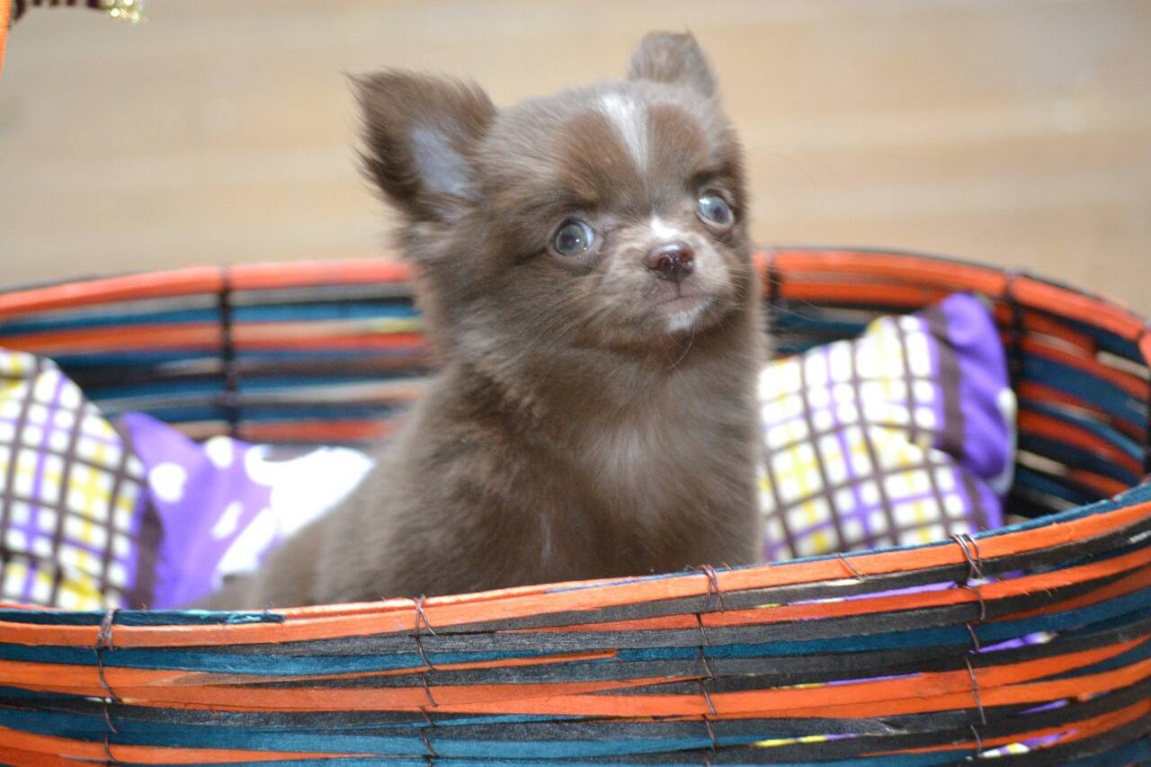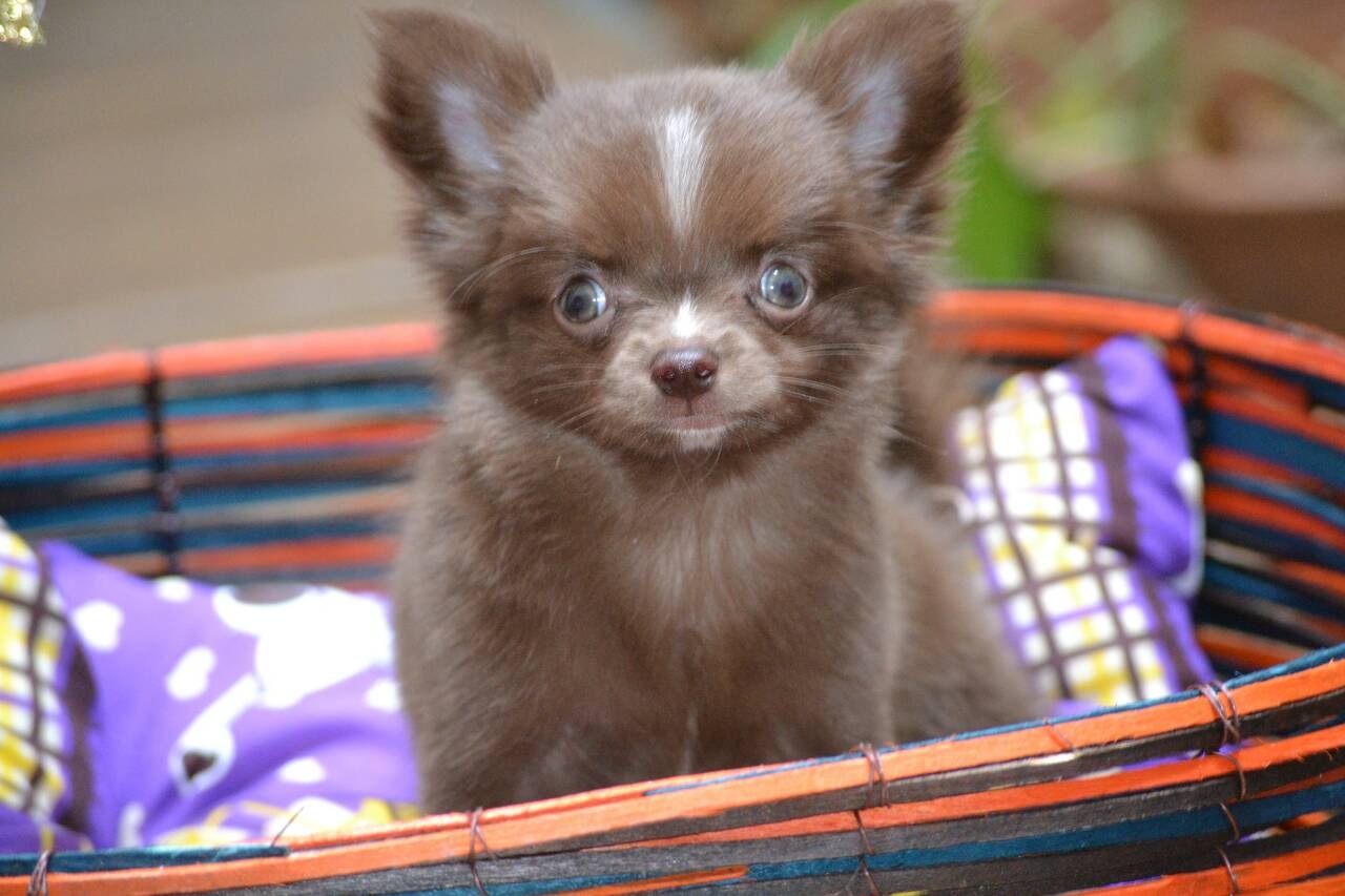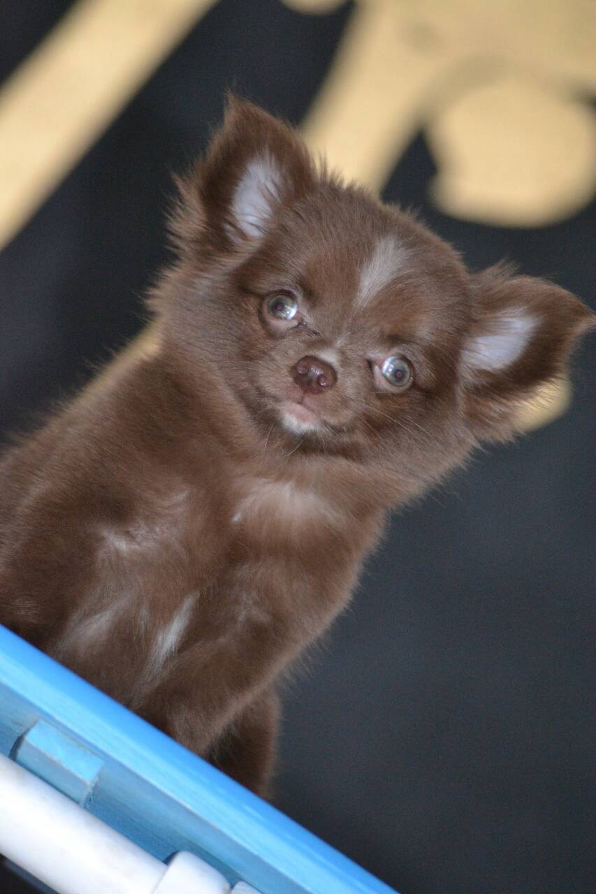 !!!!!ได้บ้านแล้วจ้าาา!!!!! ชิวาว่าขนยาว สีช็อค เพศผู้ มีใบเพ็ด