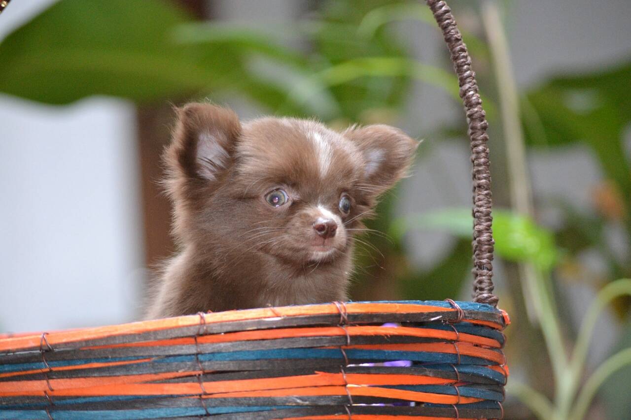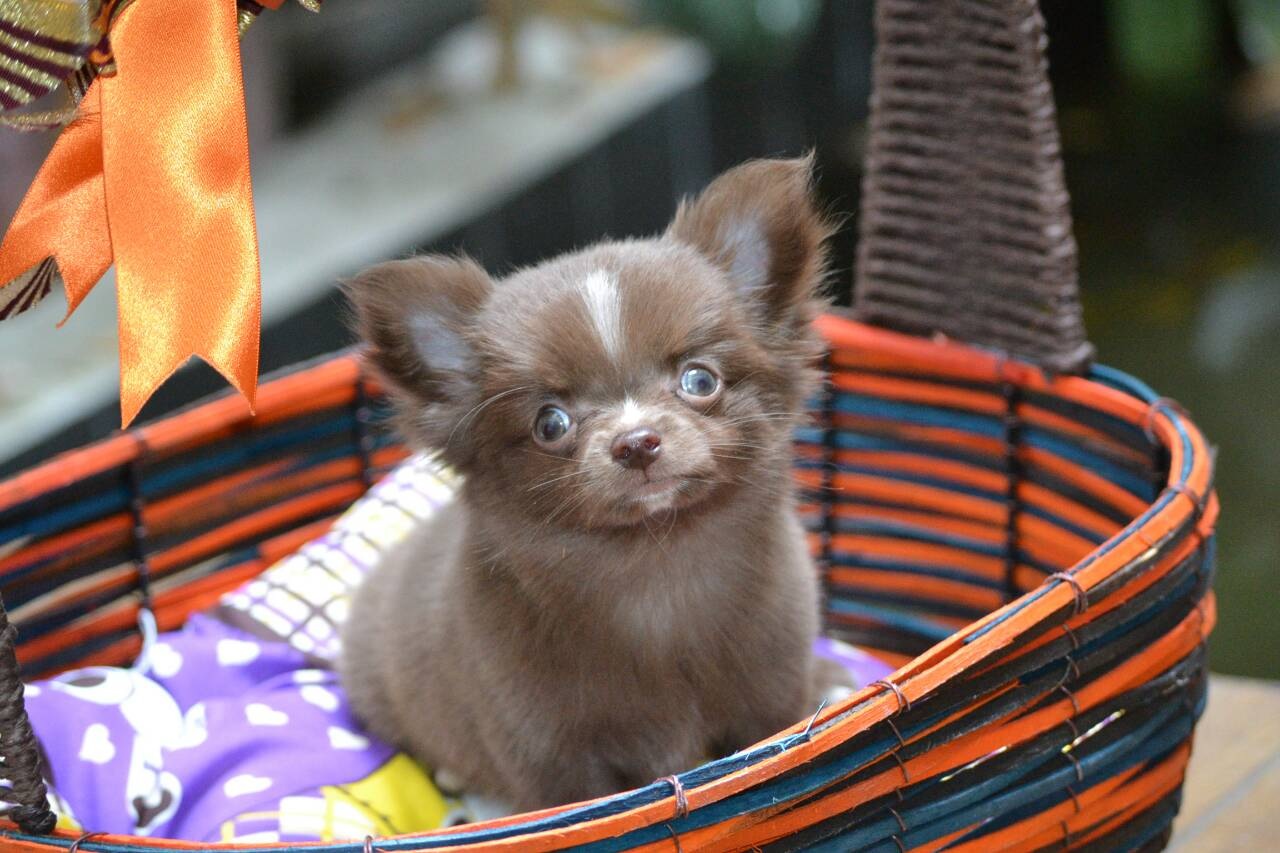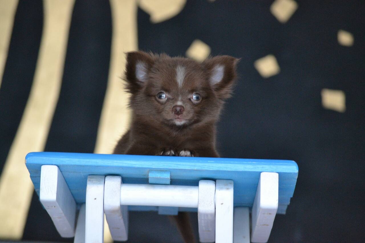 !!!!!ได้บ้านแล้วจ้าาา!!!!! ชิวาว่าขนยาว สีช็อค เพศผู้ มีใบเพ็ด