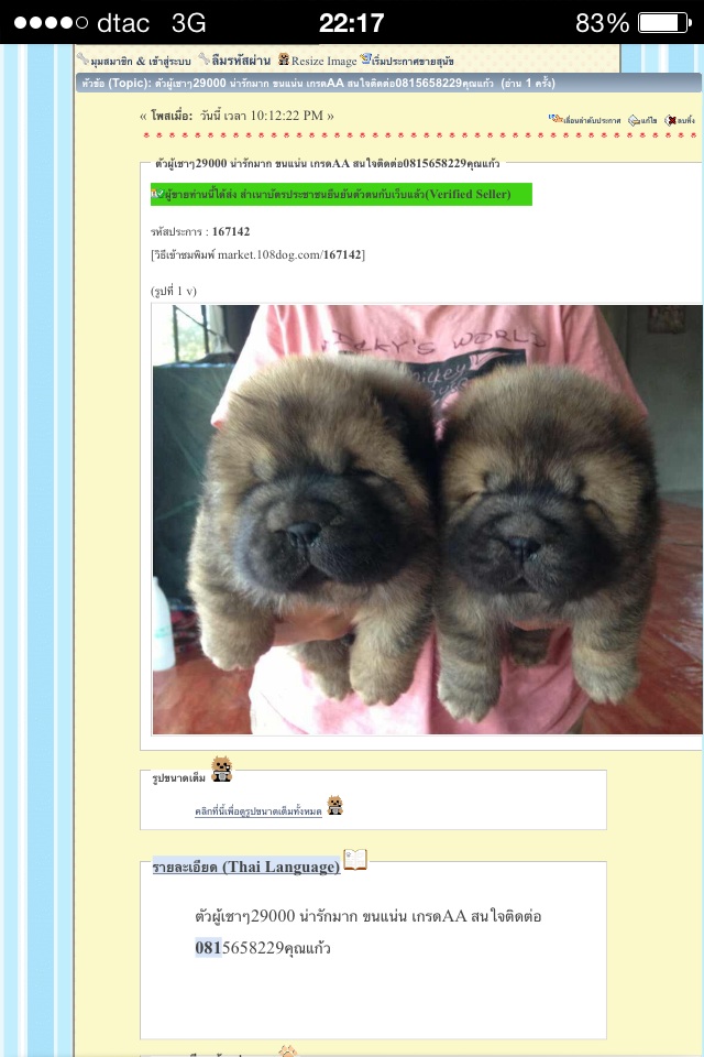 ตัวผู้เชาเชา29000น่ารักมาก เกรดAAสนใจติดต่อ0815658229คุณแก้ว