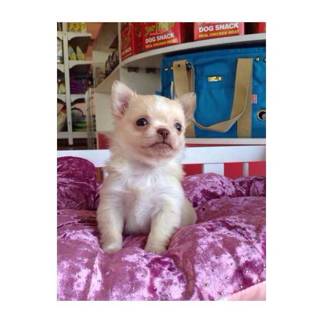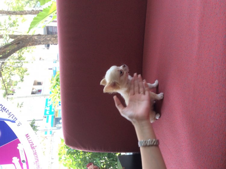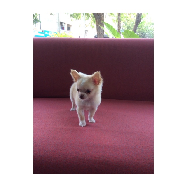 น้องชิวาวา เพศผู้ สีขาว-ครีม ขนแน่น ขี้เล่น