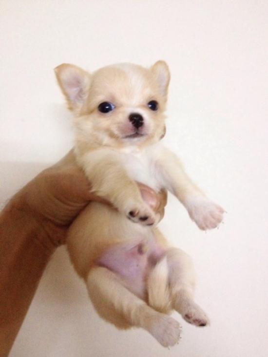 ขายลูกชิวาวาขนยาว เพศผู้ สีขาวครีม ตามรูปคับ