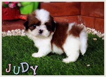 น้อง จูดี้ ชิสุเพศเมีย สีขาว น้ำตาลเข้ม ขนแน่นฟู
