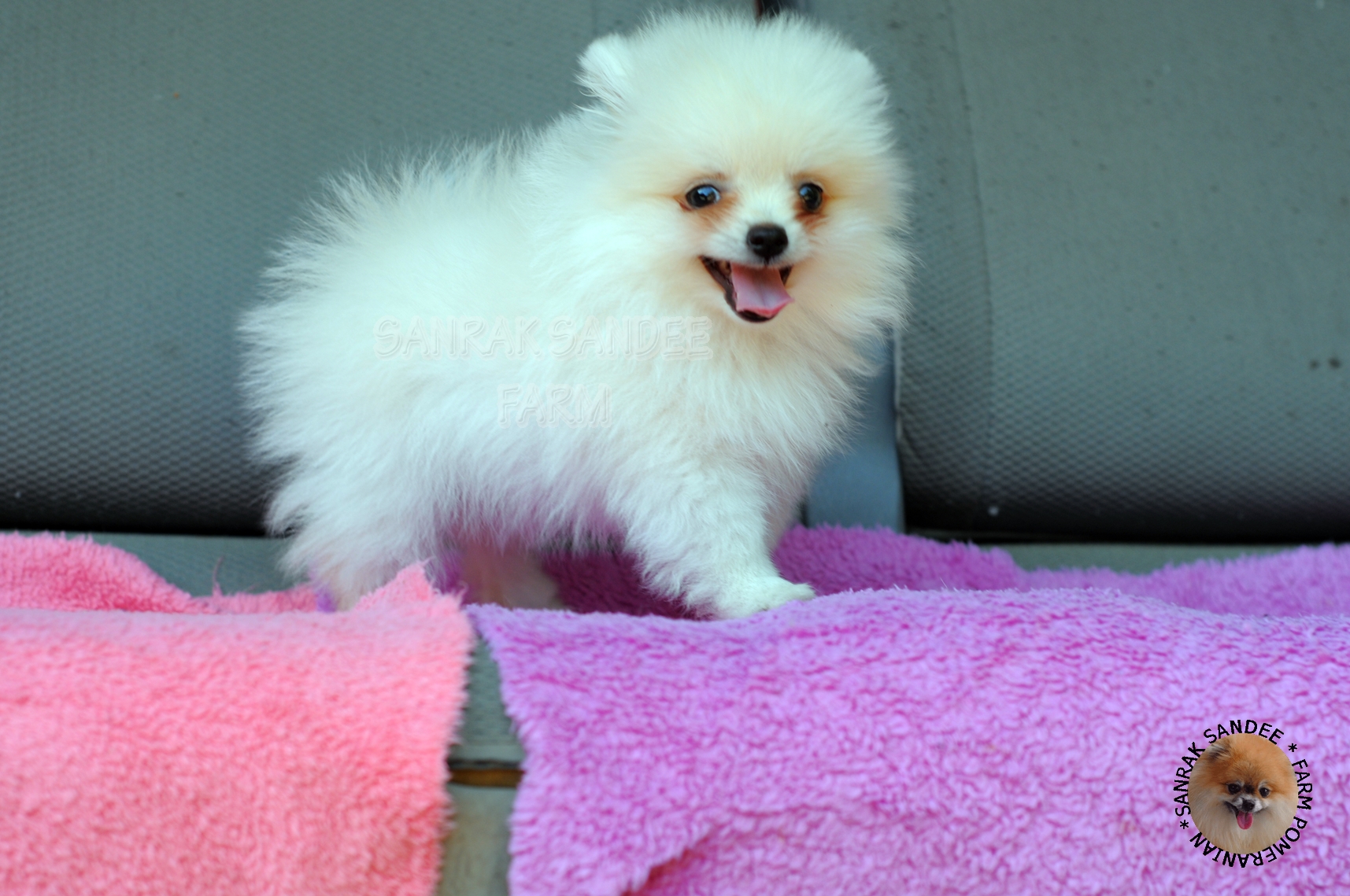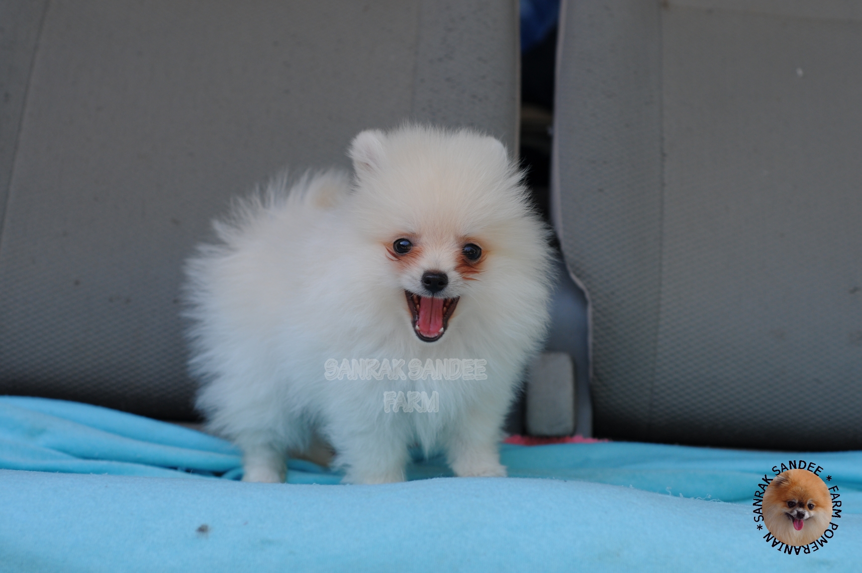 -น้องปอมเพศผู้ สีขาว อายุ 2 เดือน ราคา 11,000 บาท