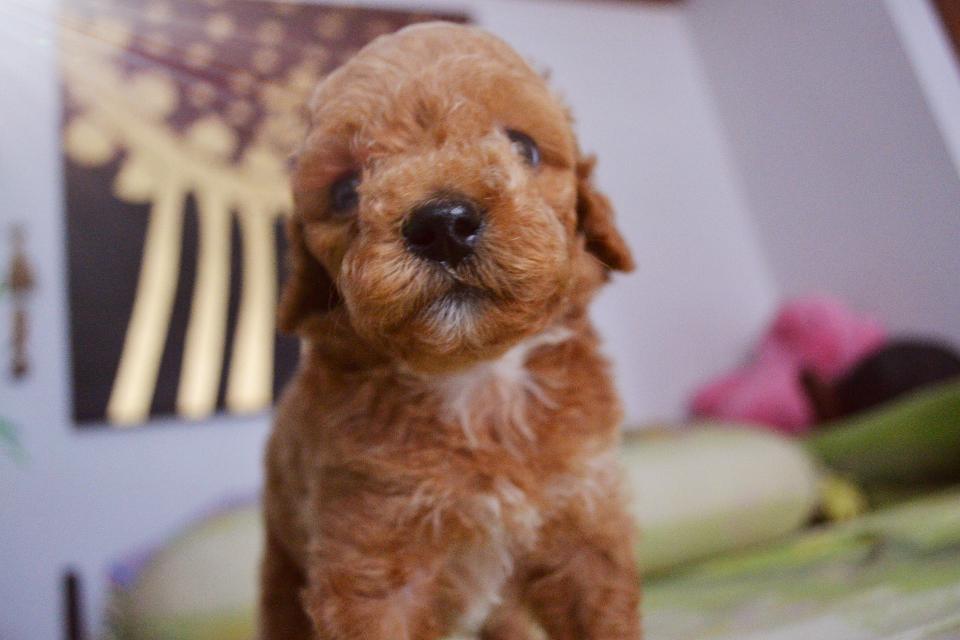 Poodleทอยเพศผู้สีน้ำตาลแดงตัวจิ๋วฟอร์มสวย พร้อมย้ายบ้านครับ