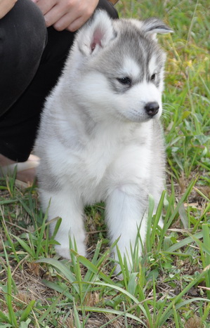 น้องหมาไซบีเรียน เพศเมีย สีขาวเทา ตาดำ โครงสร้างใหญ่ สายเลือดดี หลานแชมป์ สาย Alcinta มีใบเพ็ดฯ