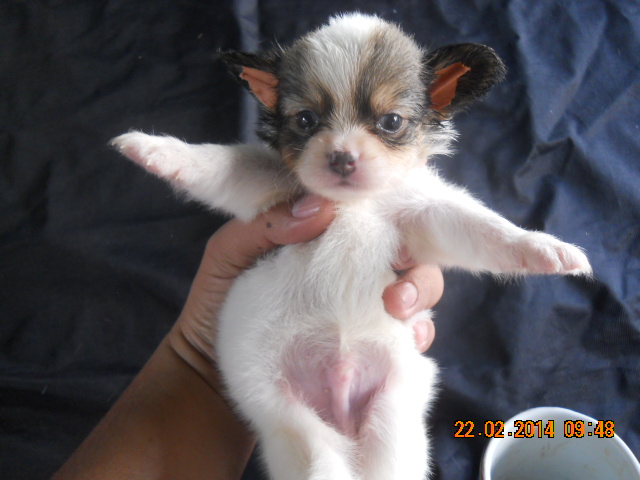 *ขายลูกชิวาวา ขนยาว สีแฟนซี ไซด์จิ๋ว หน้าสั้นๆ เพศผู้1 ***