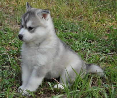 น้องหมาไซบีเรียน เพศเมีย สีขาวเทา ตาสีดำ น่าตาน่ารักมาก โครงสร้างดี สายเลือดแชมป์ สาย Alcinta