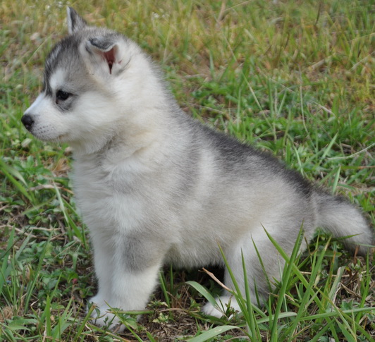 น้องหมาไซบีเรียน เพศเมีย สีขาวเทา ตาสีดำ น่าตาน่ารักมาก โครงสร้างดี สายเลือดแชมป์ สาย Alcinta