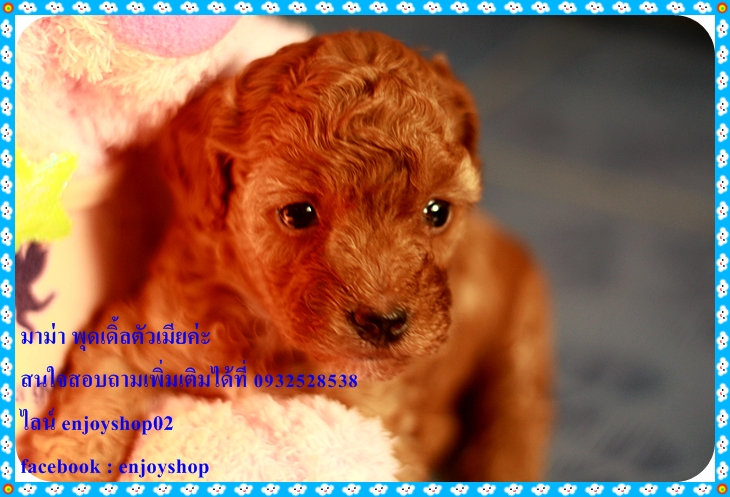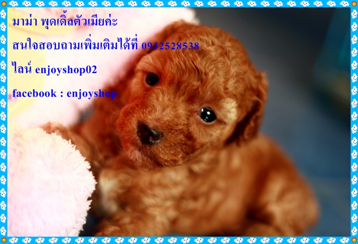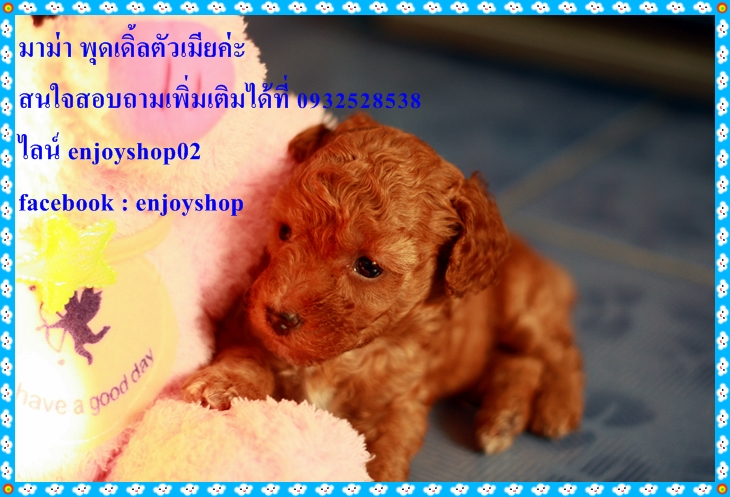 ยินดีให้บริการค่ะ พุดเดิ้ลทอยสีน้ำตาลตัวเมีย เกิดเมื่อวันที่ 3 ก.พ. สุขภาพแข็งแรง ซื้อวันนี้ฟรีถ่ายพยาธิ 2 ครั้ง วัคซีนเข็มแรก ในราคาเพียง4900 บาท ราคานี้รวมค่าส่งค่ะ สอบถามเพิ่มเติมได้ที่ 093-2528538 ไลน์ enjoyshop02 facebook: enjoyshop
