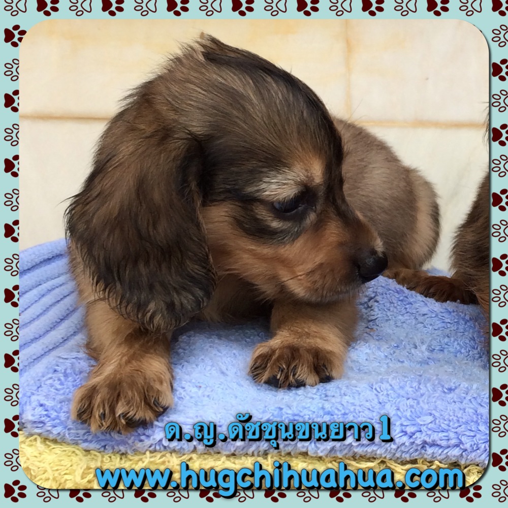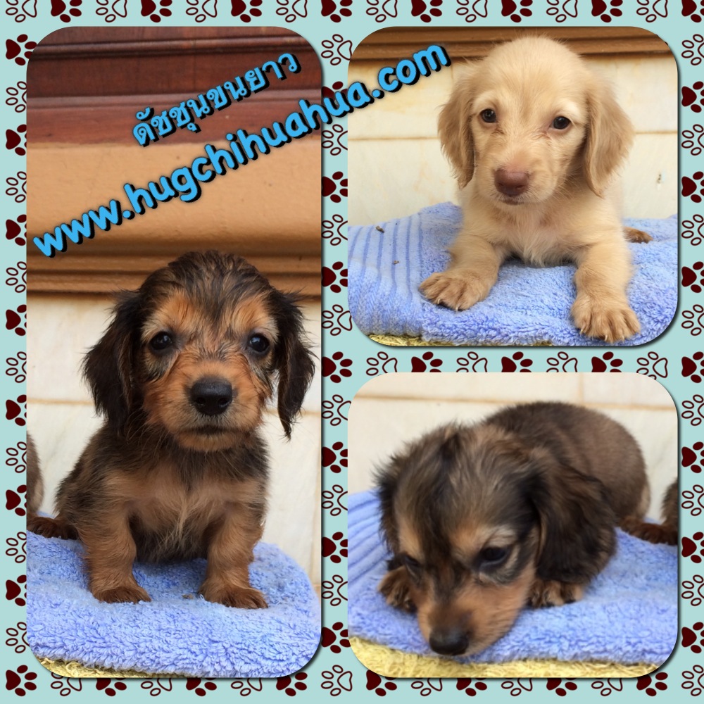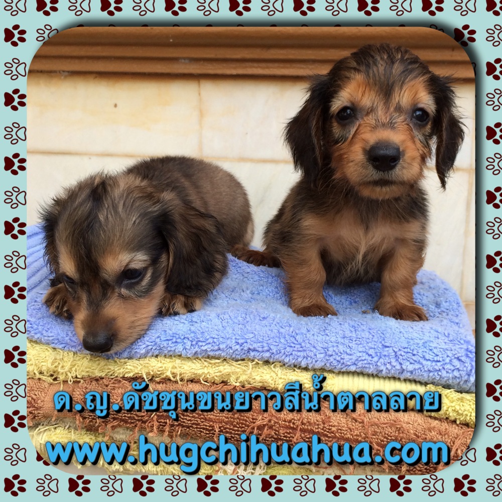 จำหน่ายลูกดัชชุนขนยาว เพศผู้สีครีม เพศเมียสีน้ำตาลลาย