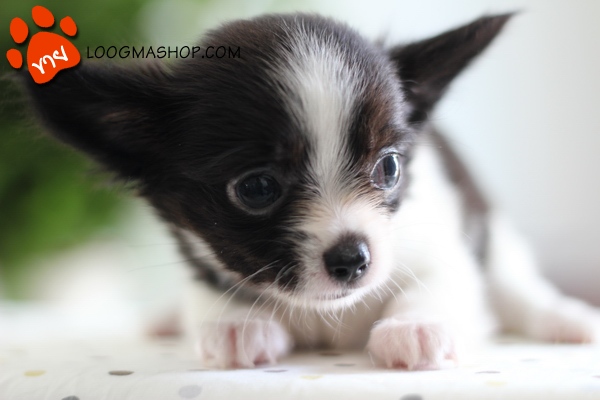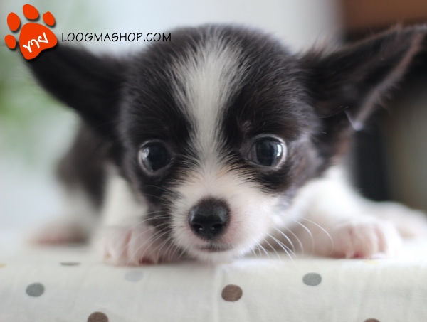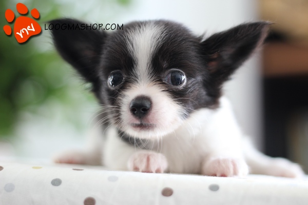 ชิวาวา เพศเมีย สายไต้หวัน ไซส์เล็ก สีแฟนซี+ดำ ลายวัว พร้อมย้ายบ้านนะคะ