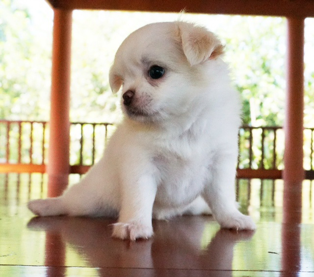 เปิดจอง ชิวาวาขนยาว "น้องคาโอ" เพศผู้ สีขาว-ครีม