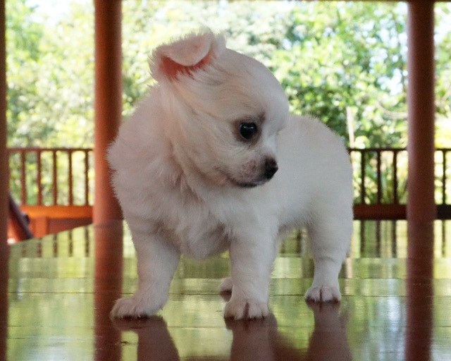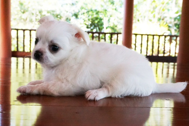 ชิวาวาขนยาว "น้องโอโจ้" เพศผู้ สีขาว-ครีม