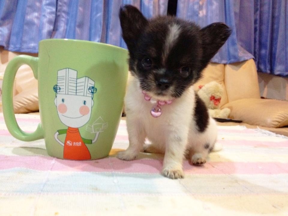 ชิวาวาขนยาว(น้องเบิร์ดเดย์)สายใต้หวัน สีขาว-ดำ ไซด์ทีคัพ เพศเมีย หน้าสั้น