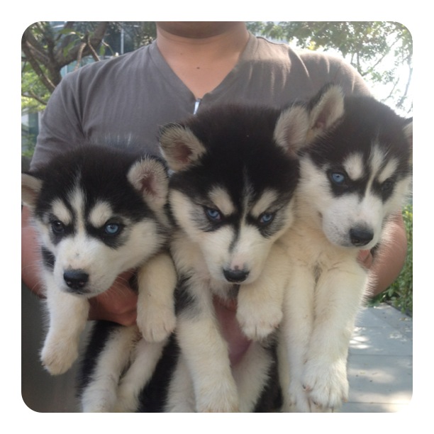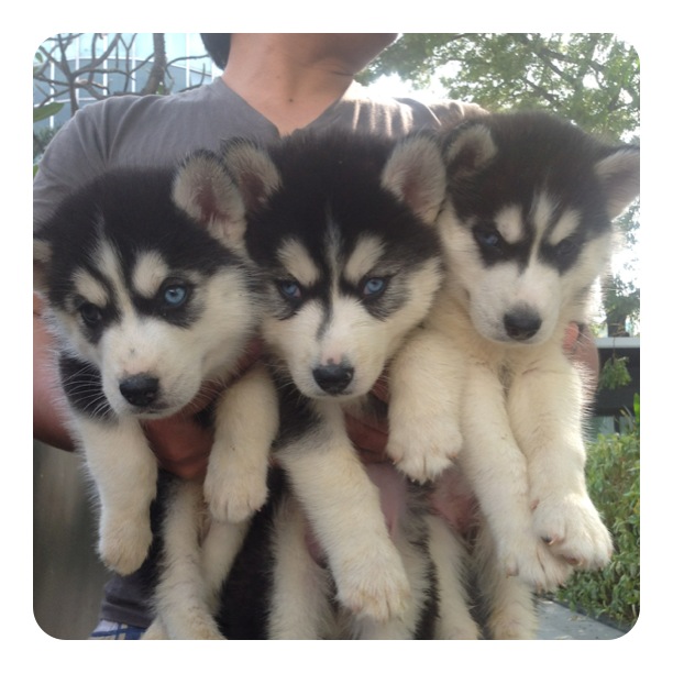 ไซบีเรียนสีขาวดำคอกนี้มี 3 ตัว เพศเมีย2 ผู้1
