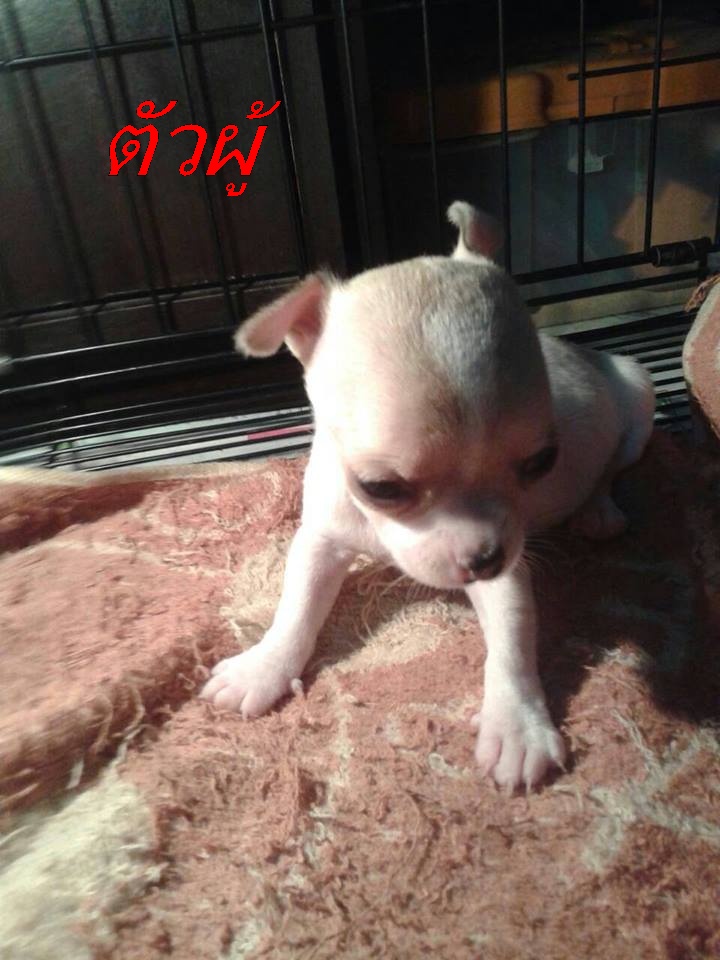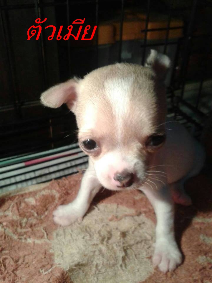 ขายลูกสุนัข ชิวาวาแฟนสีขนสั้น สีขาว-น้ำตาล แฟนซีแท้