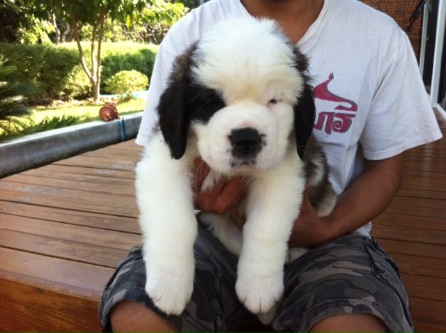 ลูกเซนต์เบอนารดสายเลือดดี พ่อแม่มีใบเพดดีกรีเต็มใบ อายุครบ 1 เดือนวันที่ 10/1/57 ลูกสุนัขทุกตัวจะได้รับวัคซีนเข็มแรกก่อนส่ง มีบริการส่งทางเครื่องบินนะครับ รับประกันความสวยทุกตัว