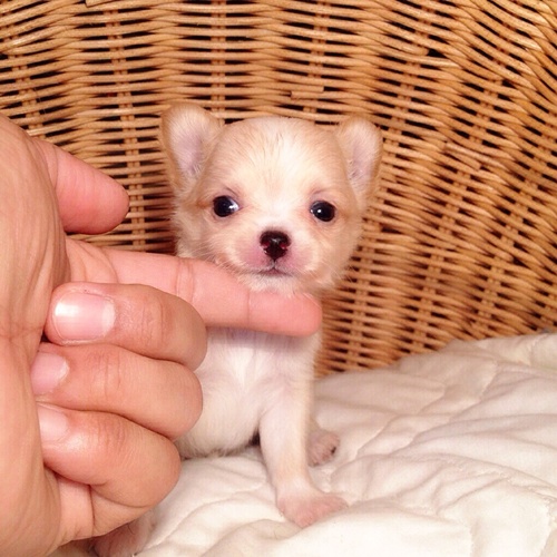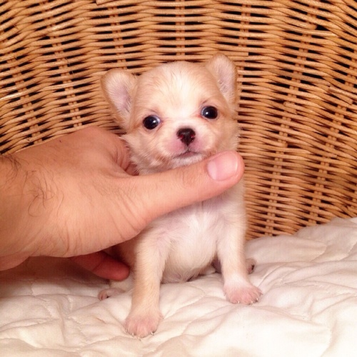 ขายลูกชิวาวาขนยาว เพศผู้ สีขาวครีม ตามรูปคับ
